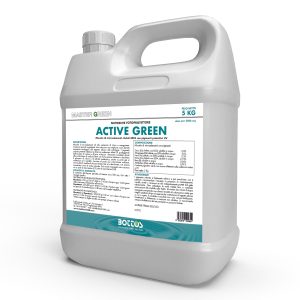Active Green je mešanica mikrohranil, posebej zasnovana za zaščito trave pred negativnimi učinki odvečne svetlobe in/ali toplote ter ji omogoča, da si opomore od obremenitev, ki lahko nastanejo, hkrati pa zagotavlja takojšnjo naravno zeleno barvo. Ta funkcija je posledica prisotnosti posebnega translaminarno absorbirajočega barvnega pigmenta, ki vsebuje odbojna sredstva, ki ščitijo travno listje pred škodljivimi UV žarki. Popolna prisotnost mikroelementov z visokim odstotkom nekaterih ključnih elementov pri navedenih odmerkih optimalne uporabe Active Green, mangan-cink-baker-železo, poveča zaščitni učinek, hkrati pa povzroči endogeno odpornost proti boleznim in hitro presnovno okrevanje, kar ima za posledico ponovno vzpostavitev fotosinteze in proizvodnje sladkorja. Rastlina, zaščitena pred odvečno svetlobo in toploto, prihrani tudi energijo, potrebno za preprečevanje oksidativnih procesov, ki so posledica nastajanja prostih radikalov v pogojih toplotnega in svetlobnega stresa. V profilaktičnih posegih je ob redni uporabi v celotnem vegetativnem obdobju močno sredstvo za boj proti poletni gnilobi v mikroroku (C3) in podaljšuje vegetativno dobo v makroroku (C4) v času popoletne predormante. Enako učinkovito je v vseh tistih primerih, kjer okrevanje po biotskih in abiotskih obremenitvah zahteva tudi takojšnje barvanje trate, namenjene specifični uporabi (športno-kmetijska-rekreacijska). Priporoča se uporaba brez kombinacij, lahko pa se meša z večino odobrenih obrambnih izdelkov, razen s tistimi z močno alkalno reakcijo in po testiranju na majhnih površinah. Njegovo trajanje (ki se razlikuje glede na odmerek in vrsto uporabe) običajno traja od 2 do največ 3 tedne. Trati daje enotno barvo, skrije morebitne posušene in/ali razbarvane lise, s takojšnjim delovanjem in naravnimi zelenimi toni, ki se spreminjajo glede na količino porabljene vode.
