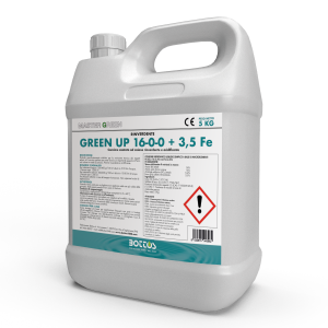 Green Up je ozelenitvena in biostimulativna gnojilna raztopina na osnovi dušika in železovega sulfata. Posebej zasnovano za tehnično prehrano trate je popolno gnojilo za zagotavljanje pomembne zaloge železa in barve v popolni varnosti. Takoj razpoložljiva frakcija železa je zelo uporabna za zatiranje mahu. Aktiven učinek ozelenitve in kislosti skozi vse leto. Green Up se lahko uporablja z večino fitosanitarnih izdelkov. Preprečuje razbarvanje, ki ga povzročajo tretiranja s herbicidi proti enoletnim Graminaceae. Pri nanosu je zelo priporočljivo, da ste previdni na vseh površinah izven trate, saj lahko železo, pridobljeno iz sulfata, povzroči madeže na kamnitih pločnikih in poteh. Zahvaljujoč močnemu kislemu učinku, Green. Up se izkaže kot odličen ojačevalec učinkovitosti fitosanitarnih tretiranj, ki podaljšuje čas delovanja agrokemikalij. Poveča proizvodnjo klorofila. Ne naredi inkrustacij. Absorbiramo ga lahko tako s foliarnim nanosom kot s koreninskim vsrkavanjem. Njegovo trajanje je običajno največ 2-3 tedne, odvisno od odmerkov in vrste uporabe.